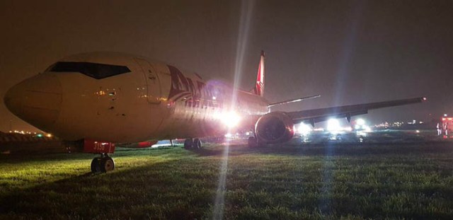 Uçağın iniş yaptığı sırada meydan da şiddetli yağmurun etkili olduğu belirtilirken, olay sırasında kimsenin yaralanmadığı bilgisi verildi.