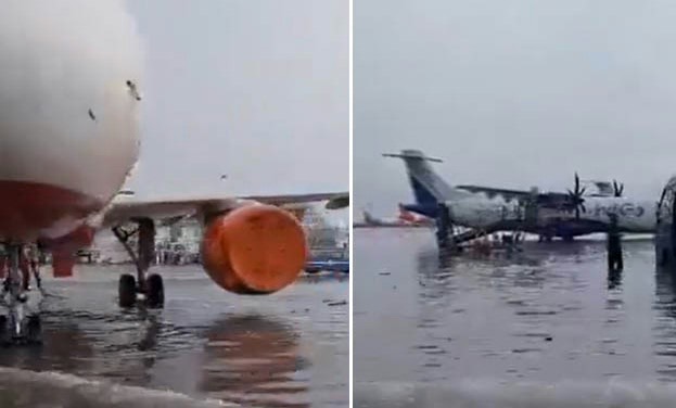 Hindistan’ın Kolkata şehrindeki Netaji Subhas Chandra Bose Havalimanı göle döndü.