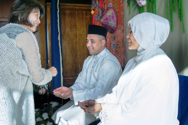 Malezya düğün geleneklerine göre gelin ve damat tahta oturduktan sonra yakın aile üyeleri, akrabalar ve önemli misafirler sırayla kürsüye çıkarak çifti tebrik eder ve kutsarlar.