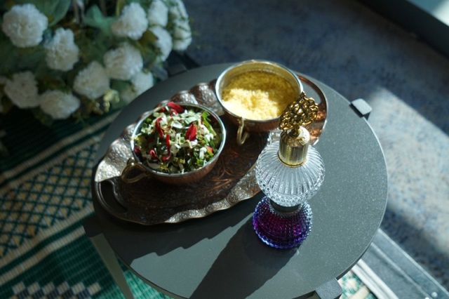 Mehmet ve Nur’un düğün töreninde de yerli ve yabancı davetliler gelin ve damadın ellerine gül suyu dökerek, avuçlarına pirinç ve yapraklar koyarak iyi dileklerini paylaştı.