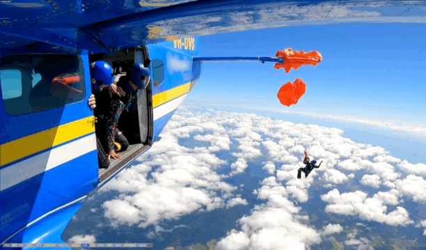 Paraşütçü, Avustralya Ulaştırma Emniyeti Bürosu (ATSB) tarafından Eylül ayında yayınlanan olay videosunda görüldüğü gibi, küçük uçağın altında 4.600 metre (15.000 feet) yükseklikte birkaç saniye boyunca havada asılı kaldı.