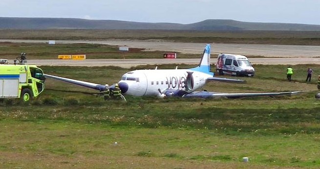 Arjantin’in Río Grande Havalimanı’nda bugün pistten çıkan ve iniş takımları çöken Basler BT-67 uçağının hurdaya ayrılabileceği belirtildi.