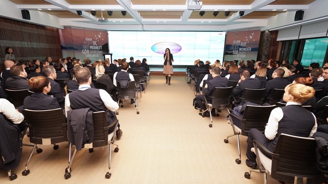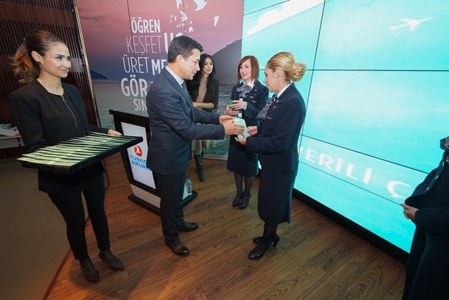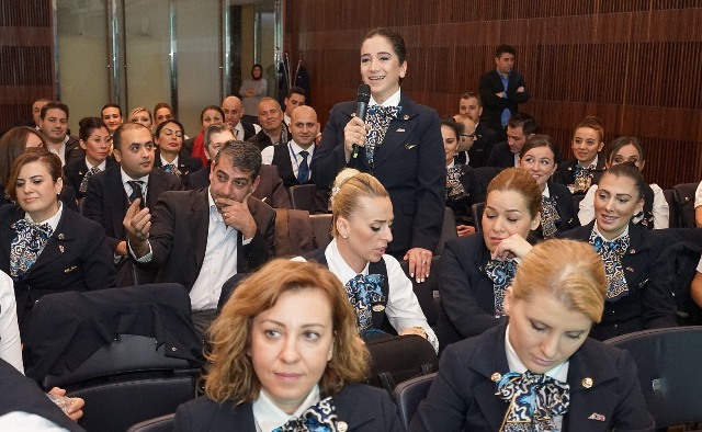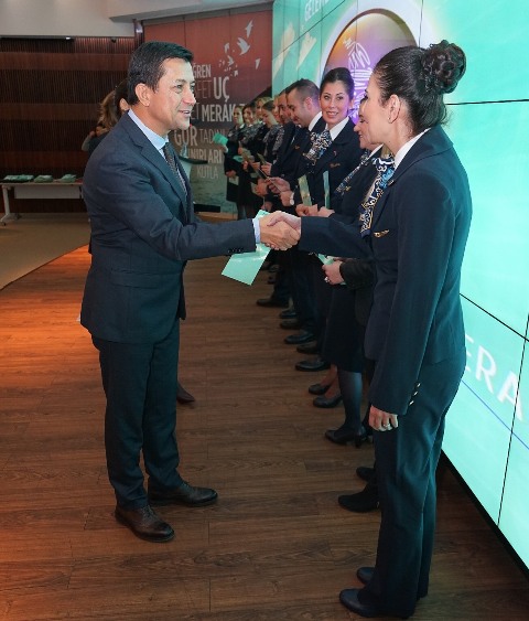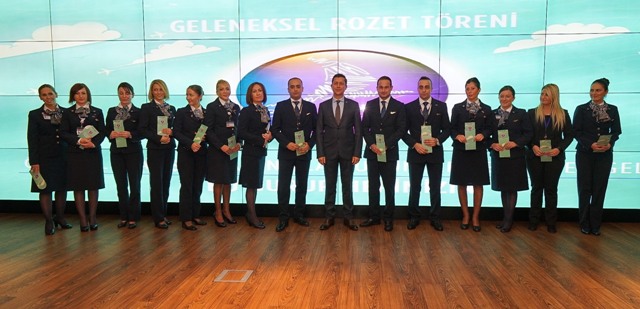 Bayrak taşıyıcının dünyanın en büyük havayolu markası olma hedeflerine katkıda bulunan 131 kabin kabin amirine rozetlerini Genel Müdür (Uçuş İşletme) Yardımcısı Levent Yılmaz ve Kabin Hizmetleri Başkanı Nevin Çolak takdim etti.